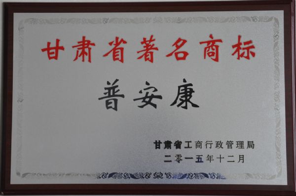 甘肅省工商行政管理局依據(jù)專(zhuān)家組認(rèn)定意見(jiàn)作出決定,認(rèn)定我公司“普安康”商標(biāo)為甘肅省著名商標(biāo),公示期滿(mǎn)后于2015年12月給予公司頒發(fā)了《甘肅省著名商標(biāo)證書(shū)》。
