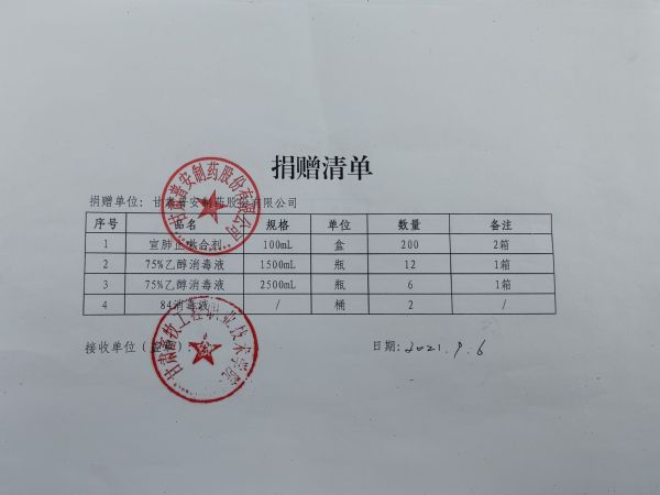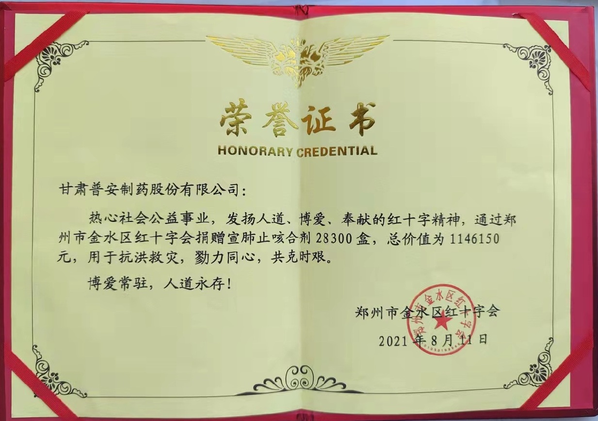 普安制藥始終不忘攜手互助,共克時艱的擔(dān)當(dāng)。在鄭州面臨暴雨災(zāi)情、疫情雙重挑戰(zhàn)下,普安制藥捐贈價值114.6萬元的抗疫物資用于鄭州災(zāi)后防疫工作,用實(shí)際行動彰顯“一方有難,八方支援”的溫情和愛心。