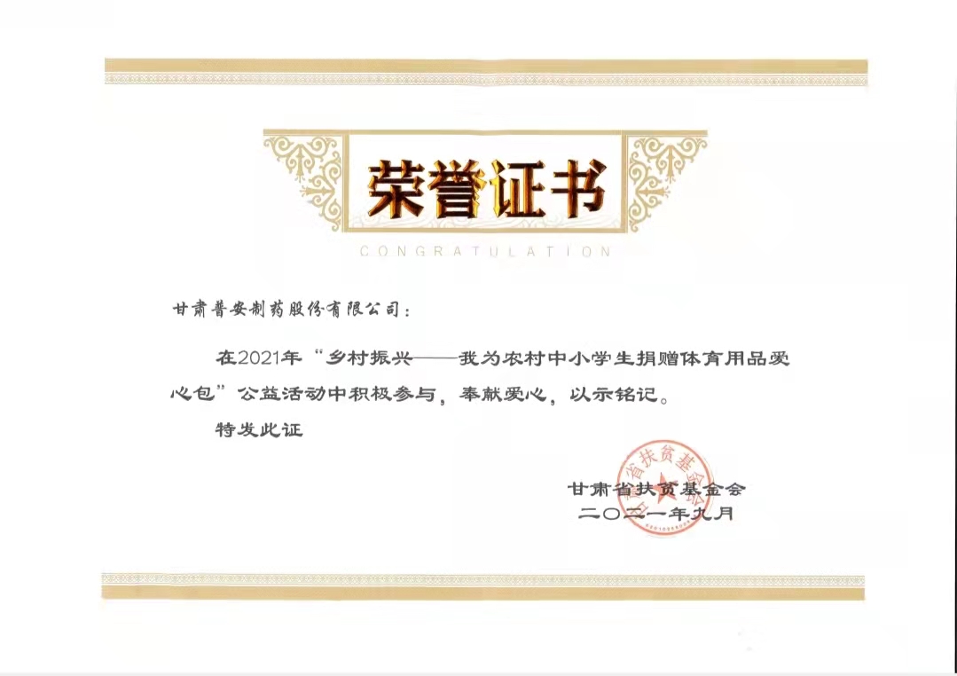 甘肅藥業(yè)集團(tuán)普安制藥(以下簡稱:普安制藥)自成立以來,一直大力弘揚(yáng)“普惠眾生、安康萬家”的企業(yè)理念,本著建設(shè)一流制藥企業(yè)、提供一流產(chǎn)品服務(wù)的目標(biāo),堅持黨領(lǐng)導(dǎo)企業(yè),堅持創(chuàng)新發(fā)展,穩(wěn)健經(jīng)營。在企業(yè)發(fā)展的同時更是懷有對國家、對民族、對社會的責(zé)任和擔(dān)當(dāng),將“回報于社會”作為一項(xiàng)重要內(nèi)容。