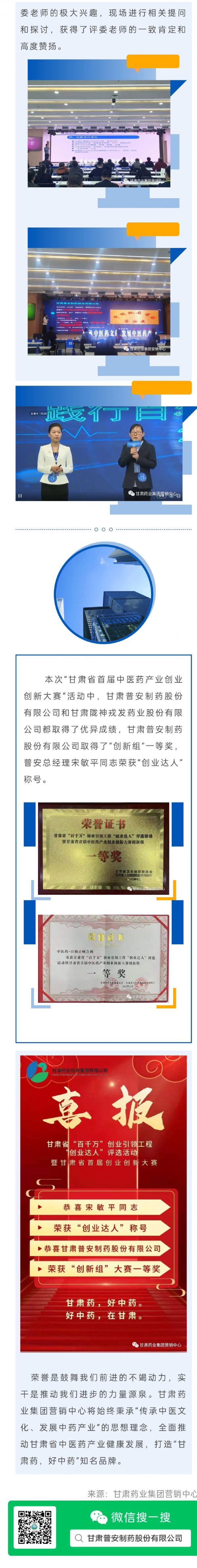 甘肅省首屆中醫藥產業創業創新大賽賽事喜報
