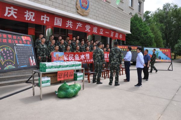 在中國(guó)共產(chǎn)黨成立100周年之際,為加強(qiáng)軍民融合工作。6月30日,普安公司慰問(wèn)了武警武威支隊(duì)執(zhí)勤一大隊(duì)二中隊(duì),向他們致以節(jié)日的問(wèn)候,并送去慰問(wèn)品,表達(dá)了普安公司與駐地官兵軍民一家親的濃濃魚水情。