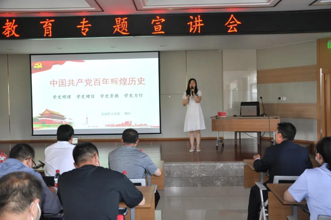 6月25日,按照武威市委統(tǒng)一安排,進一步把黨史學習教育作為增強“四個意識”、堅定“四個自信”、做到“兩個維護”的重要檢驗,甘肅普安制藥股份有限公司、甘肅省農(nóng)業(yè)工程技術(shù)研究院、甘肅農(nóng)墾藥物堿廠有限公司三個單位聯(lián)合舉辦了黨史學習教育專題宣講會。會議邀請武威市委宣講團成員、武威職業(yè)學院講師魏玲作黨史學習教育專題宣講——《中國共產(chǎn)黨百年輝煌歷史》。