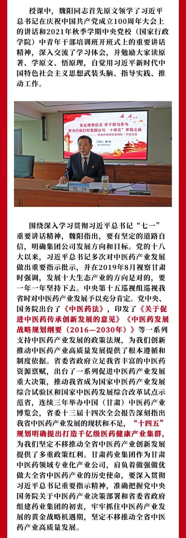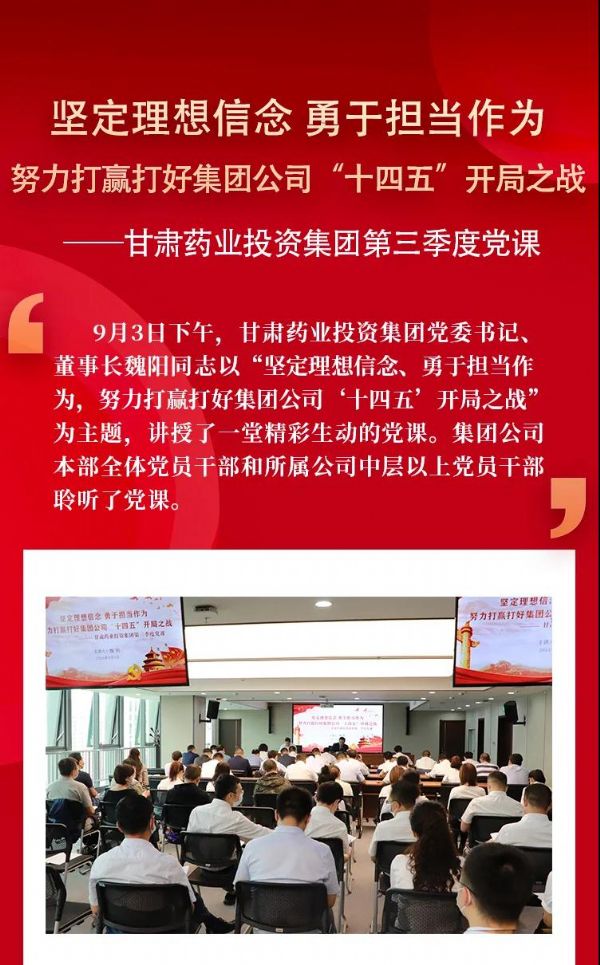 堅定理想信念 勇于擔當作為 努力打贏打好集團公司“十四五”開局之戰 ——甘肅藥業投資集團第三季度黨課