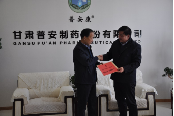 2022年1月14日上午,區總工會黨組書記、主席劉成,黨組成員、副主席王世斌等一行到甘肅普安制藥股份有限公司開展了“2022年元旦春節‘送溫暖’”活動,為我公司送來慰問金3萬元。