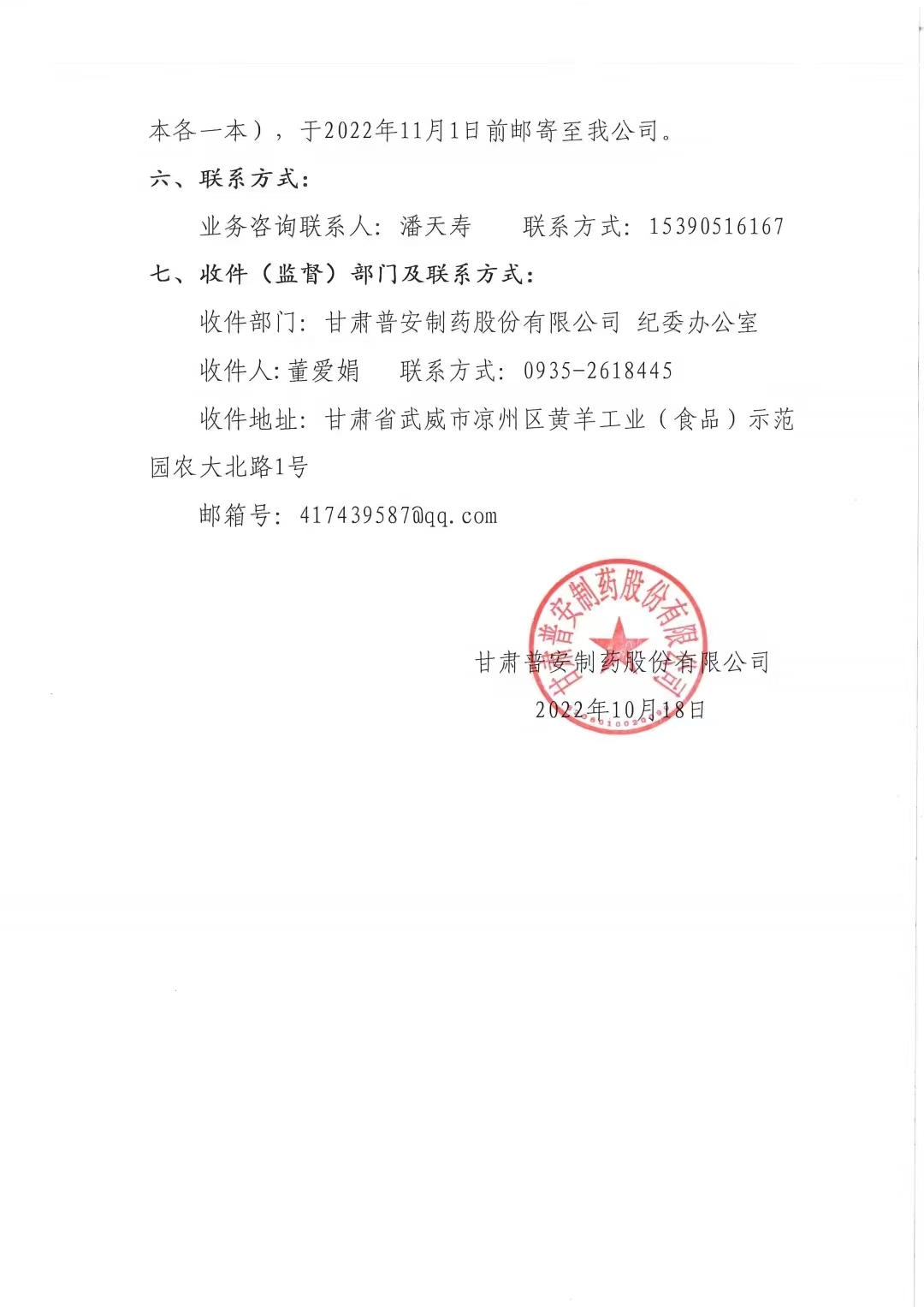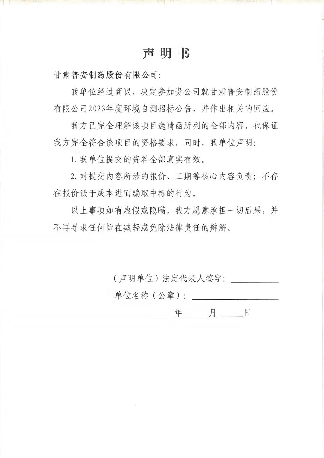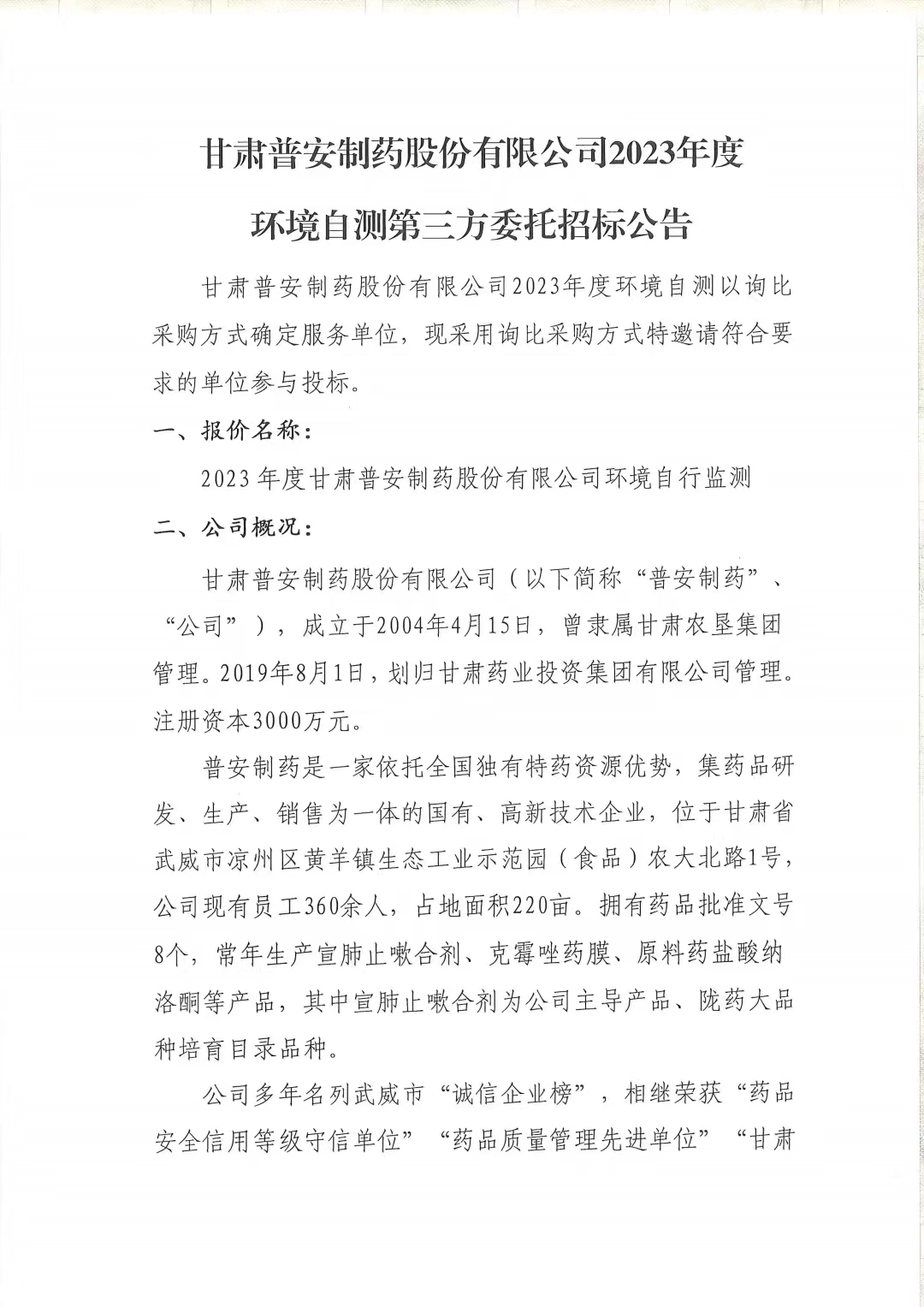 甘肅普安制藥股份有限公司2023年度環(huán)境自測第三方委托招標(biāo)公告