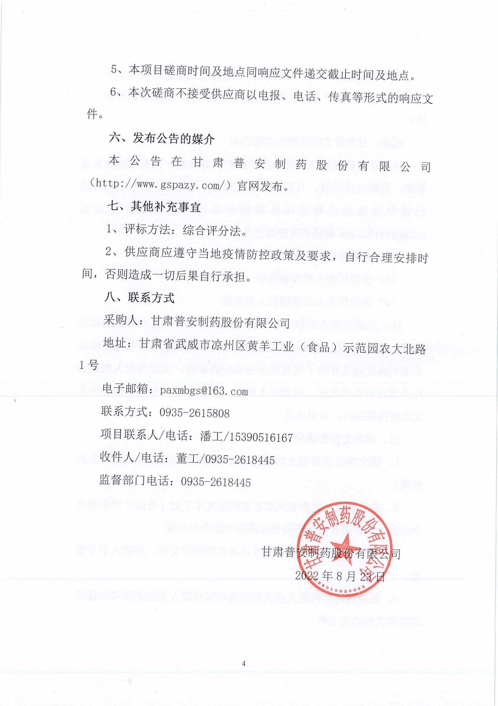 甘肅普安制藥股份有限公司年產(chǎn)5000萬(wàn)盒(3億支)宣肺止嗽合劑等液體制劑生產(chǎn)線升級(jí)改造項(xiàng)目工程造價(jià)咨詢競(jìng)爭(zhēng)性磋商公告