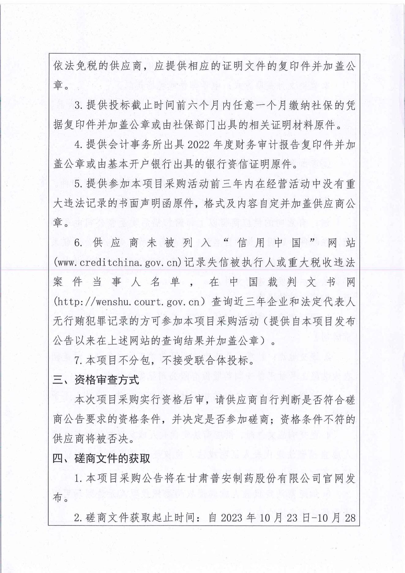 甘肅普安制藥股份有限公司年產5000 萬盒(3億支)宣肺止嗽合劑等液體制劑生產線升級改造項目潔凈區過氧化氫空間滅菌系統設備采購競爭性磋商公告