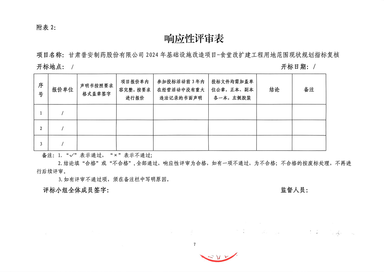 甘肅普安制藥股份有限公司2024年基礎設施改造項目-食堂改擴建工程用地范圍現狀規劃指標復核服務招標公告