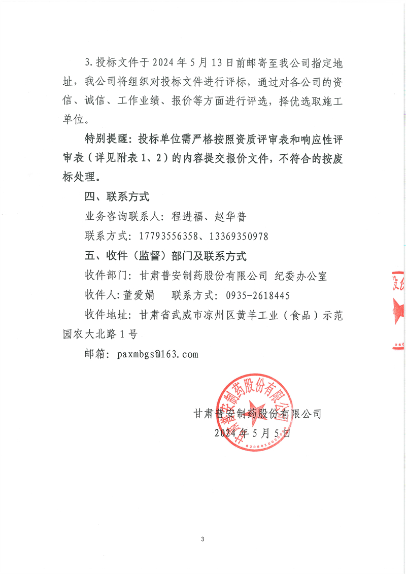 甘肅普安制藥股份有限公司2024年基礎(chǔ)設(shè)施改造項(xiàng)目-車(chē)間設(shè)備管道保溫、保冷工程施工招標(biāo)公告