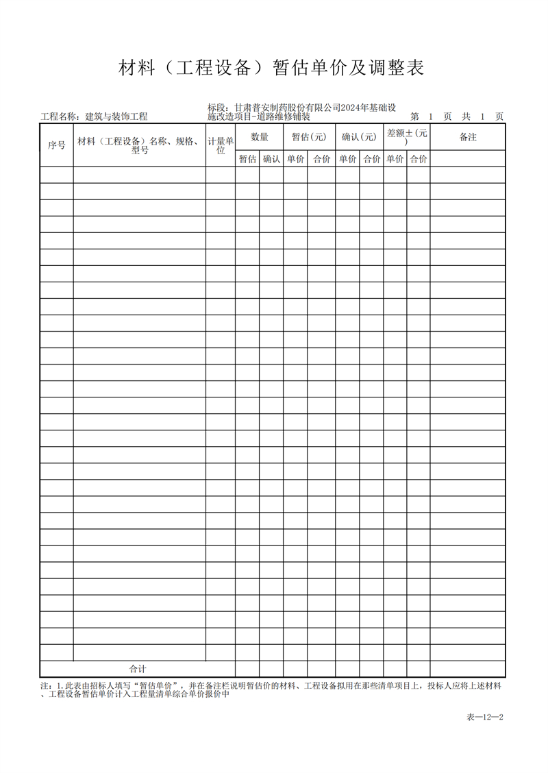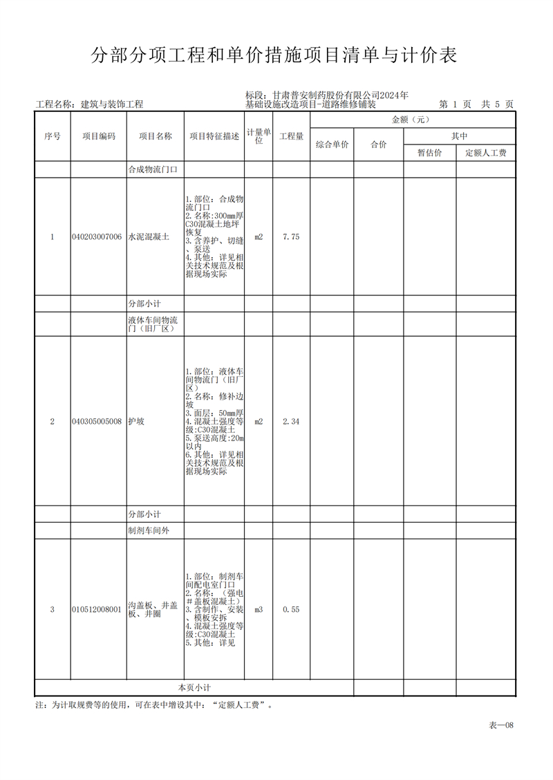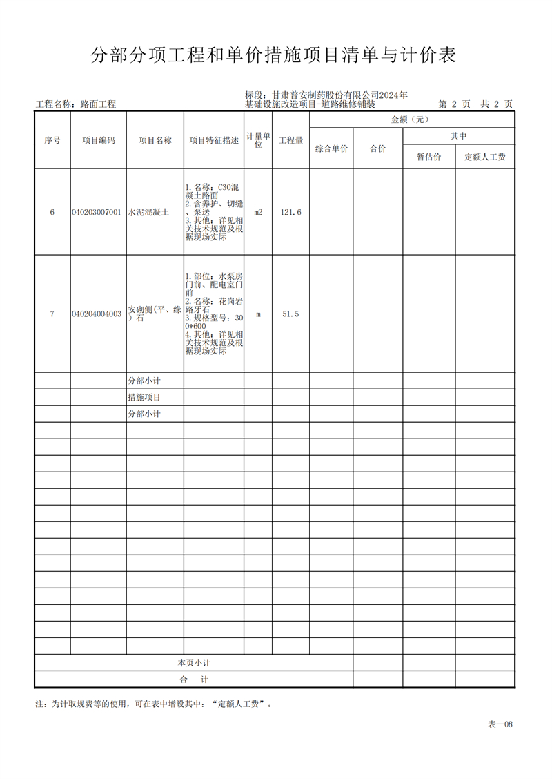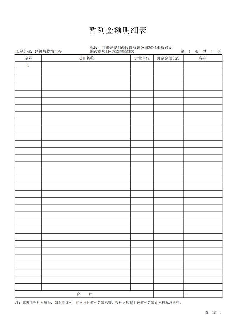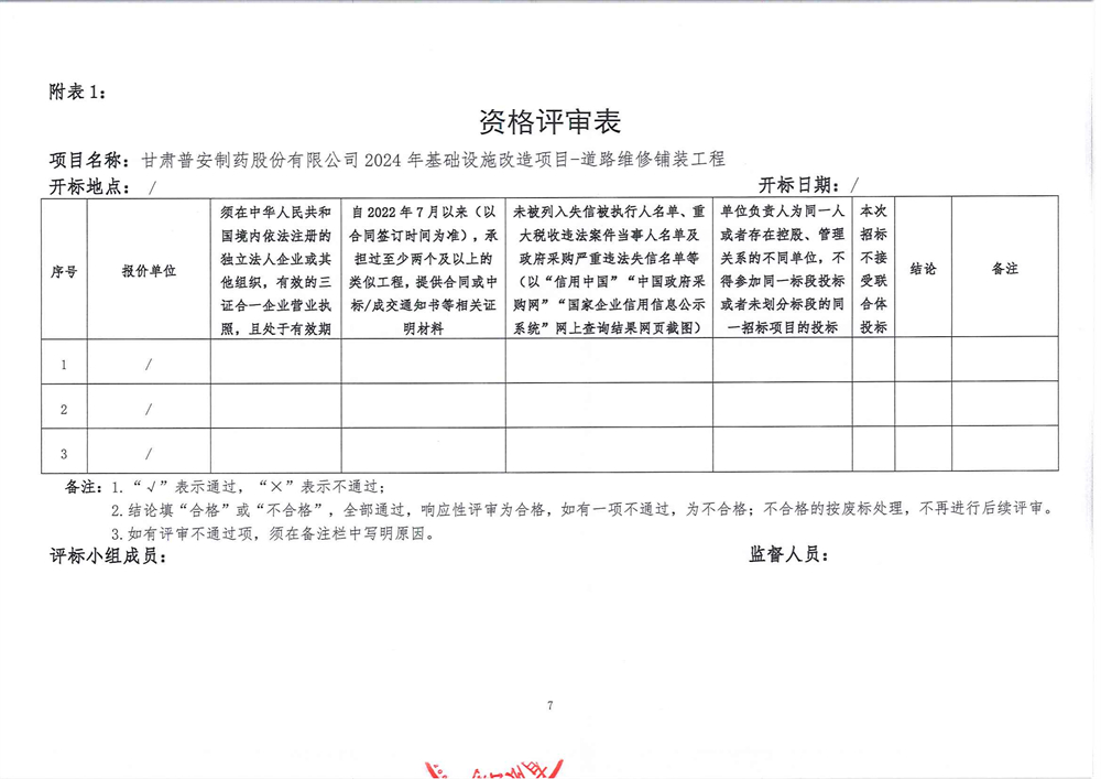 甘肅普安制藥股份有限公司2024年基礎(chǔ)設(shè)施改造項(xiàng)目-道路維修鋪裝工程招標(biāo)公告
