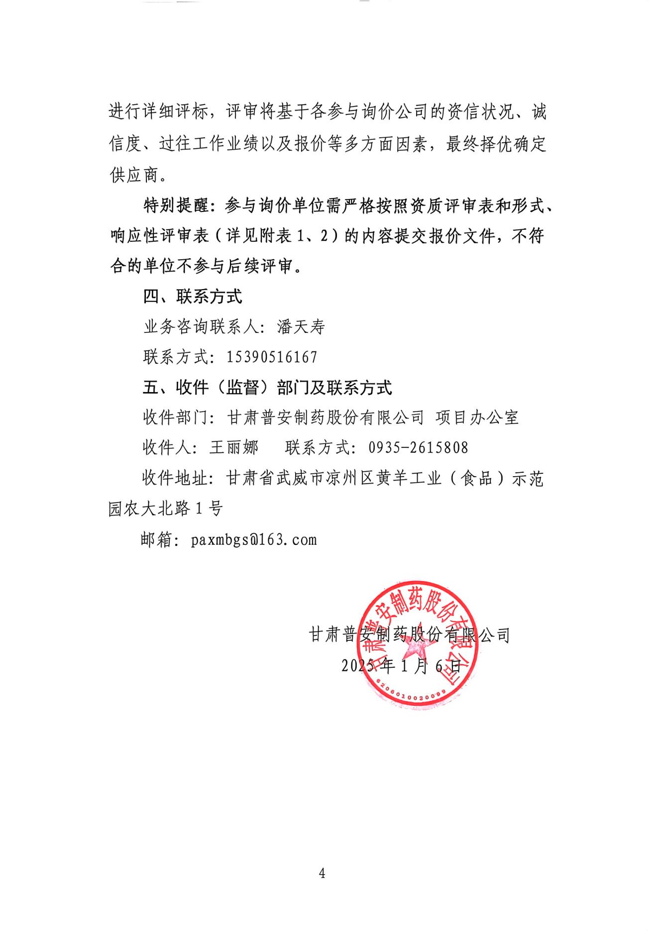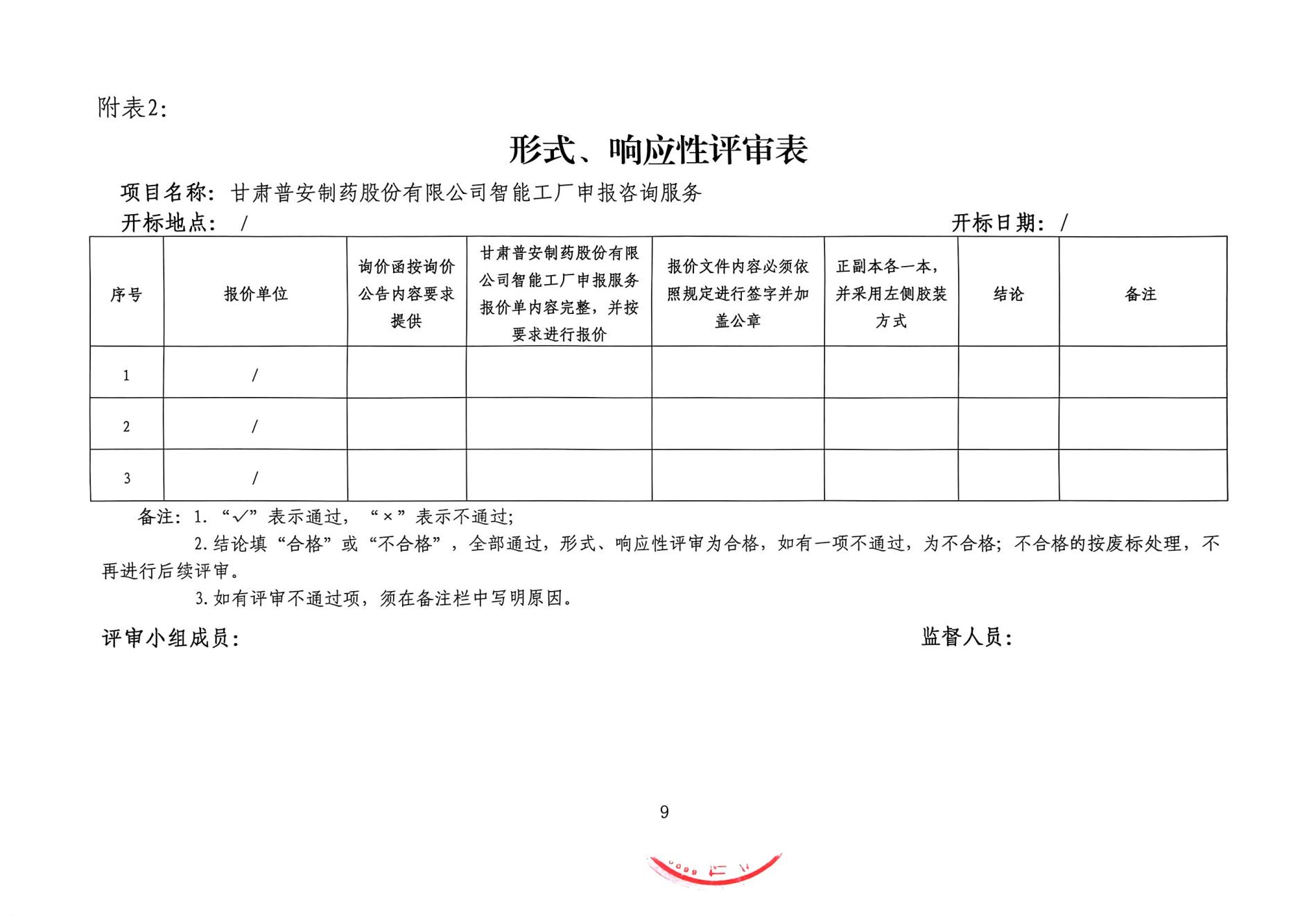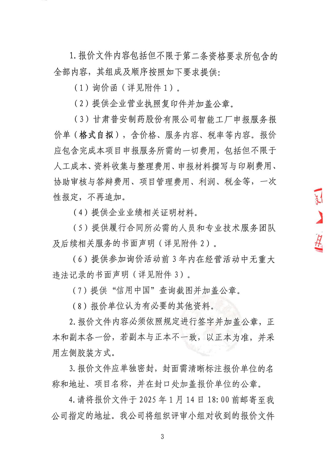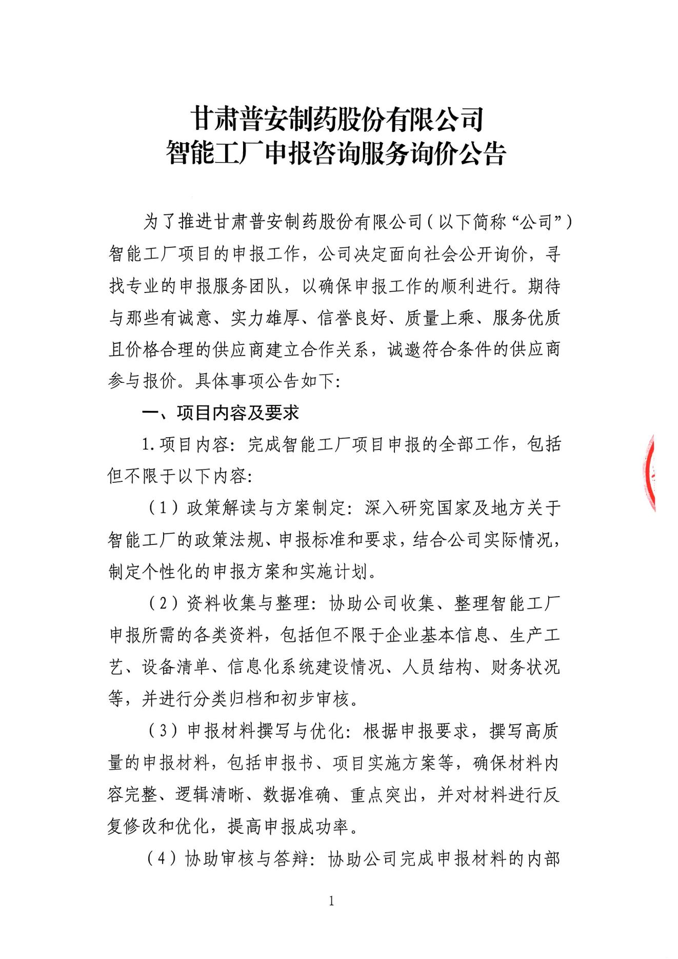 甘肅普安制藥股份有限公司智能工廠申報咨詢服務(wù)詢價公告