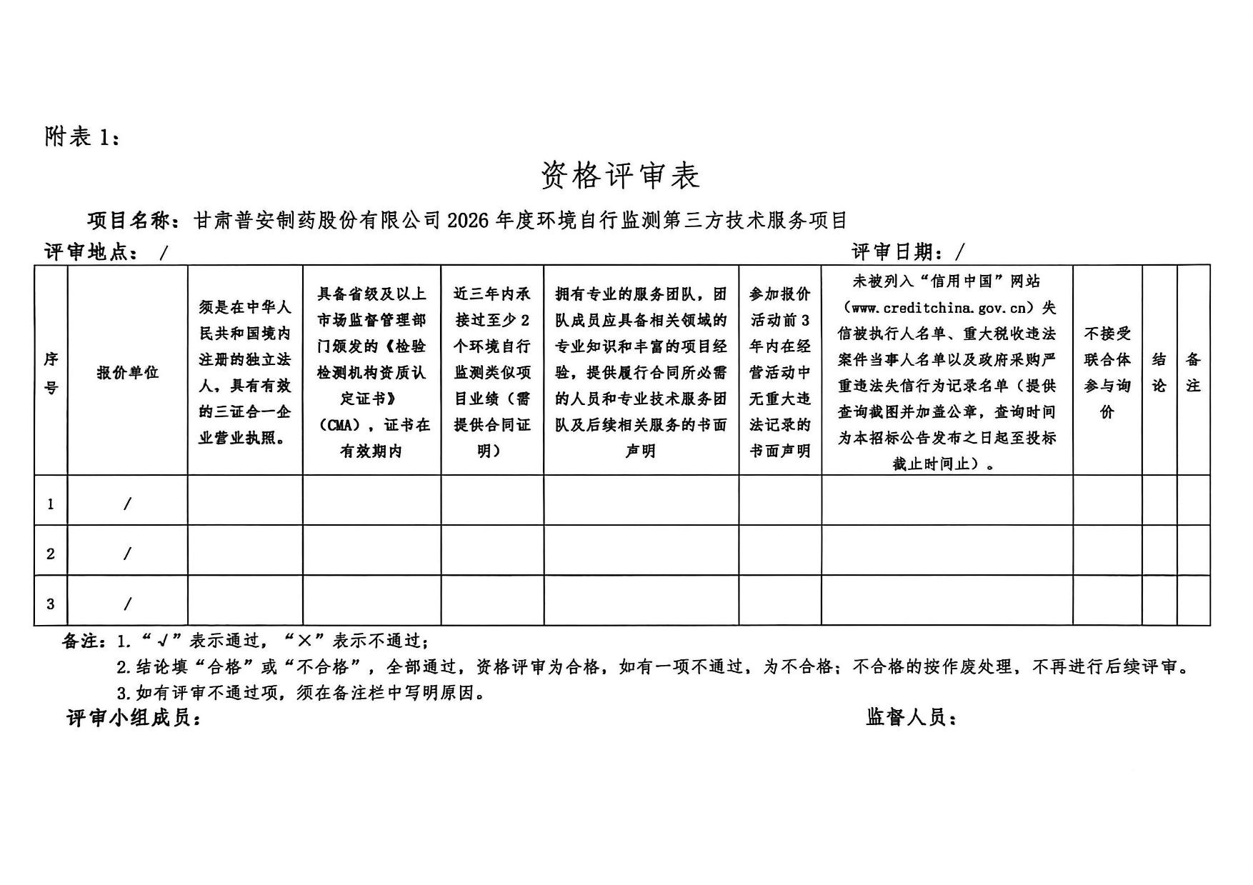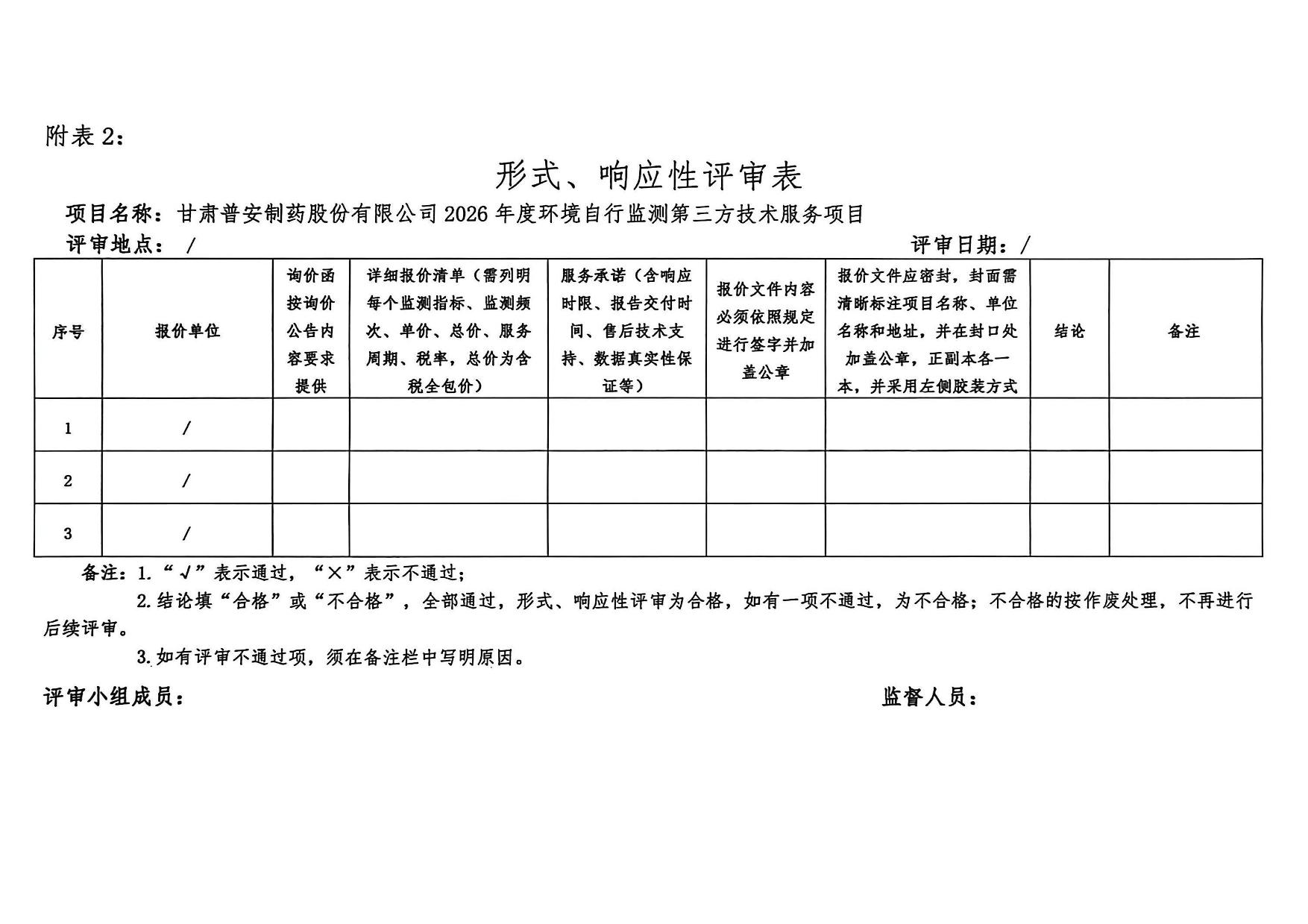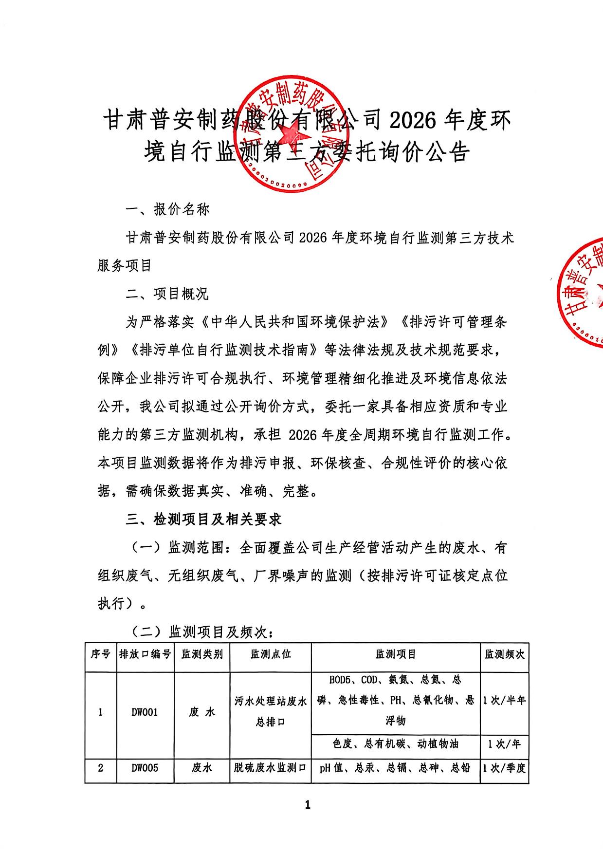 甘肅普安制藥股份有限公司 2026 年度環境自行監測第三方委托詢價公告