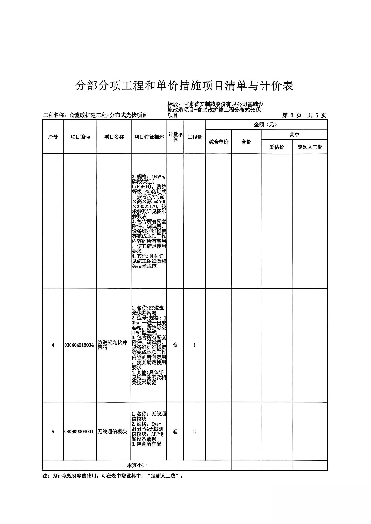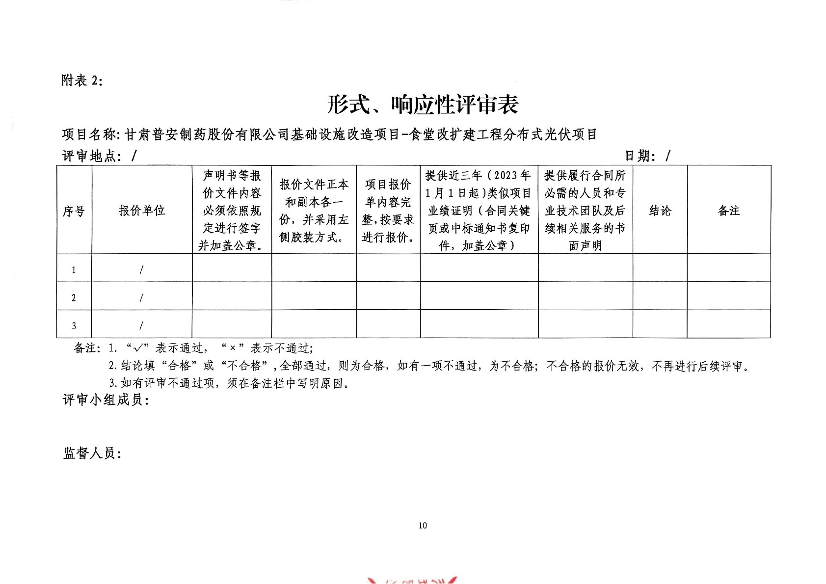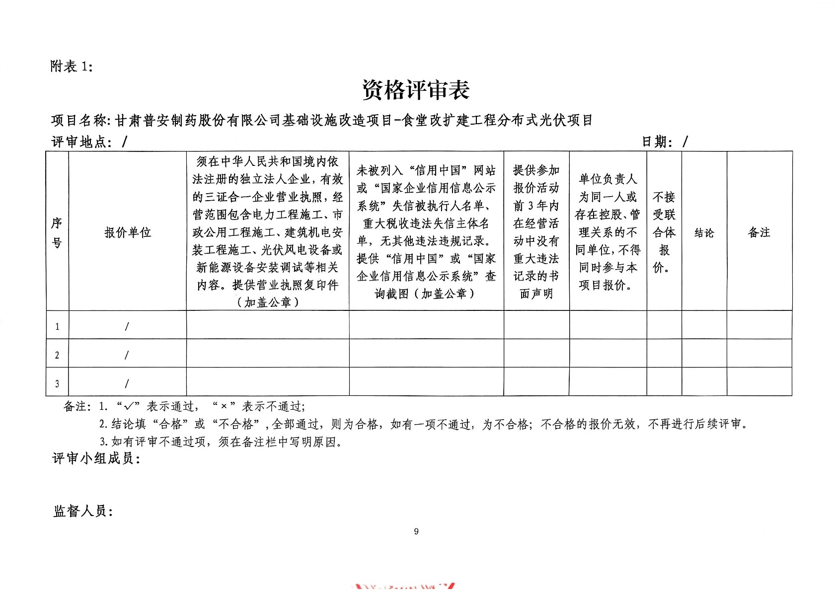 甘肅普安制藥股份有限公司基礎設施改造項目-食堂改擴建工程分布式光伏項目詢價公告