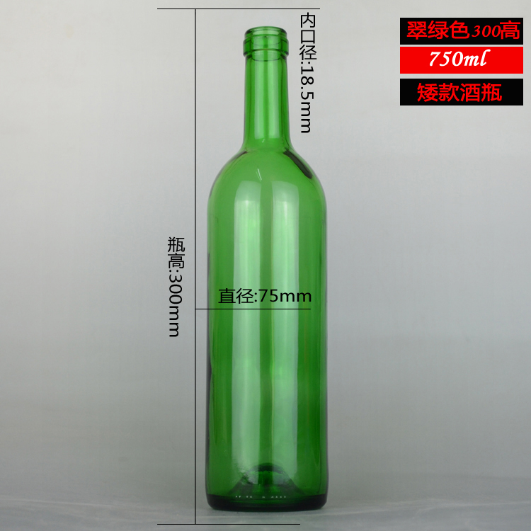 750ml 翠綠色紅酒瓶葡萄酒玻璃瓶
