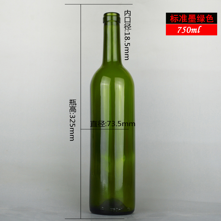 750ml 標(biāo)準(zhǔn)墨綠色紅酒瓶葡萄酒玻璃瓶